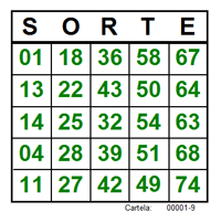 Este programa emite até 999.999 cartelas. Cada cartela possui um conjunto de 25 números que variam de 1 a 75. Todas as cartelas são exclusivas e numeradas de 1 a 999.999 e pode-se emitir qualquer intervalo delas.Até 120.000 cartelas é um banco de dados. Com as dezenas das colunas misturadas, como na figura abaixo,coluna B: 1,13,14,4,11. Já acima de 120.000 cartelas é outro banco, que tem as dezenas em ordem crescente nas colunas, a partir da cartela 1. Também neste segundo banco, as 75 pedras do sistema são distribuídas de 3 em 3 cartelas de 25 pedras. Por exemplo: as cartelas 1,2,e 3 contém as 75 pedras, e qualquer pedra sorteada, o cliente marca na primeira , segunda ou terceira cartela. Da mesma forma nas cartelas 4, 5 e 6, cartelas 7, 8 e 9 e assim por diante...