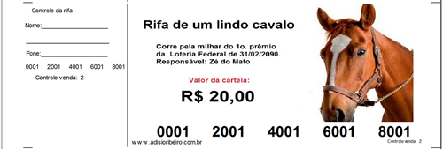 Este programa emite de 50 a 100.000 cartelas de rifa com dezenas, centenas, milhares, ou dezena de milhares com 4 a 6 cartelas por folha A4.